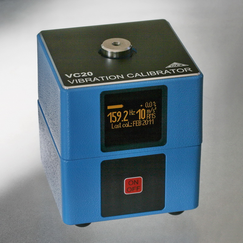 Die Schwingungskalibratoren VC20 und VC21 sind besonders robuste Kalibratoren für den Einsatz in der industriellen Praxis. Besonderer Vorteil der VC2x Kalibratoren ist die hohe zulässige Messobjektmasse von 600g bzw. 500g. Der VC20 erzeugt bei der Festfrequenz 159,2Hz eine Beschleunigung von 10m/s², während der VC21 mit insgesamt 7 wählbaren Frequenzen von 15,92..1280Hz bei unterschiedlichen Beschleunigungen arbeitet. Damit lässt sich der VC21 auch für die Ermittlung von Frequenzgängen und für die Prüfung von Sensoren benutzen, die für die Messung von Human- und Hand-/Arm-Schwingungen benutzt werden. Die Schwingungskalibratoren werden mit einem Werkskalibrierschein (rückführbar PTB) ausgeliefert.
